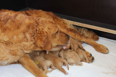 Dyna´s Schwester Mimin (Gundog`s Choice Diva) hat heute ihren 2. Wurf zur Welt gebracht 5/5. Vater ist Gleen Mhors Niko.